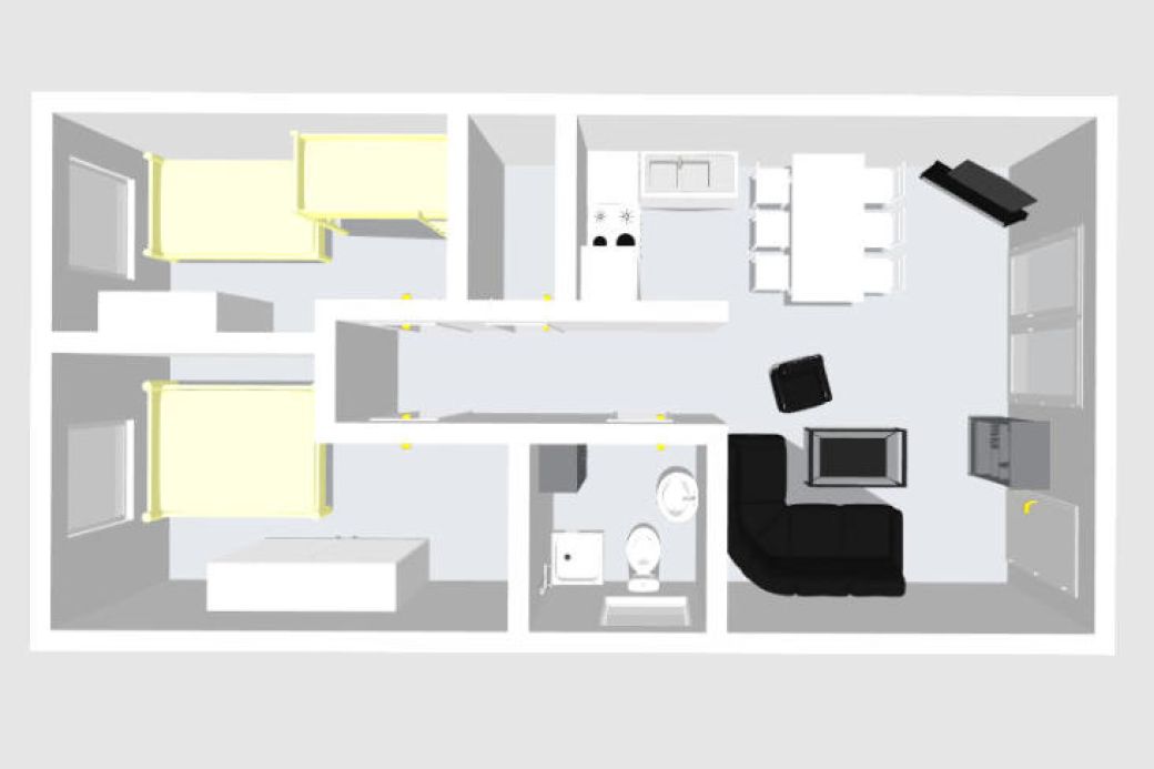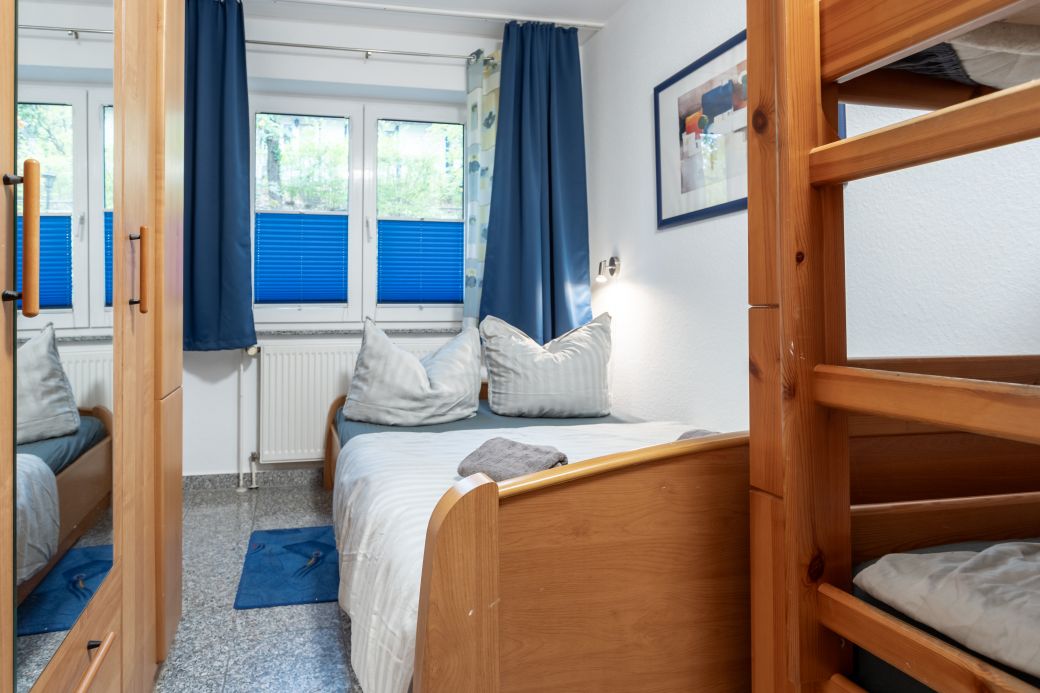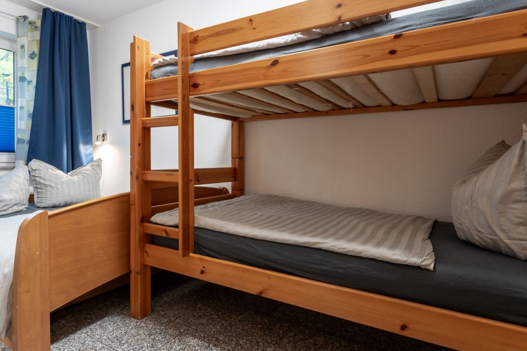 2 getrennte Schlafzimmer (Doppelbett und Hochbett), Marken Matratzen-Härtegrad 3, Verdunklungsvorhänge