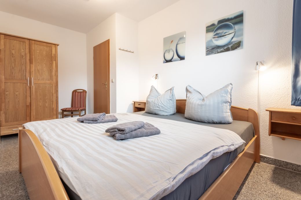 1. Schlafzimmer mit einem Doppelbett (1,80 x 2,00 m, Marken Matratzen-Härtegrad 3)