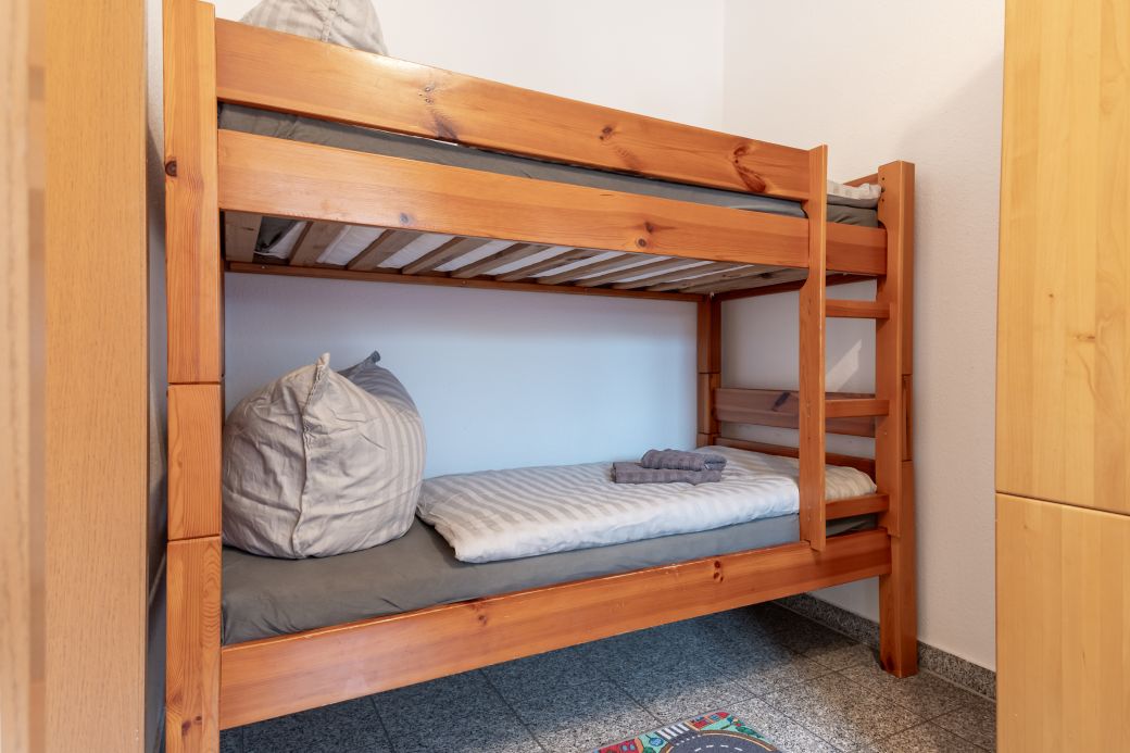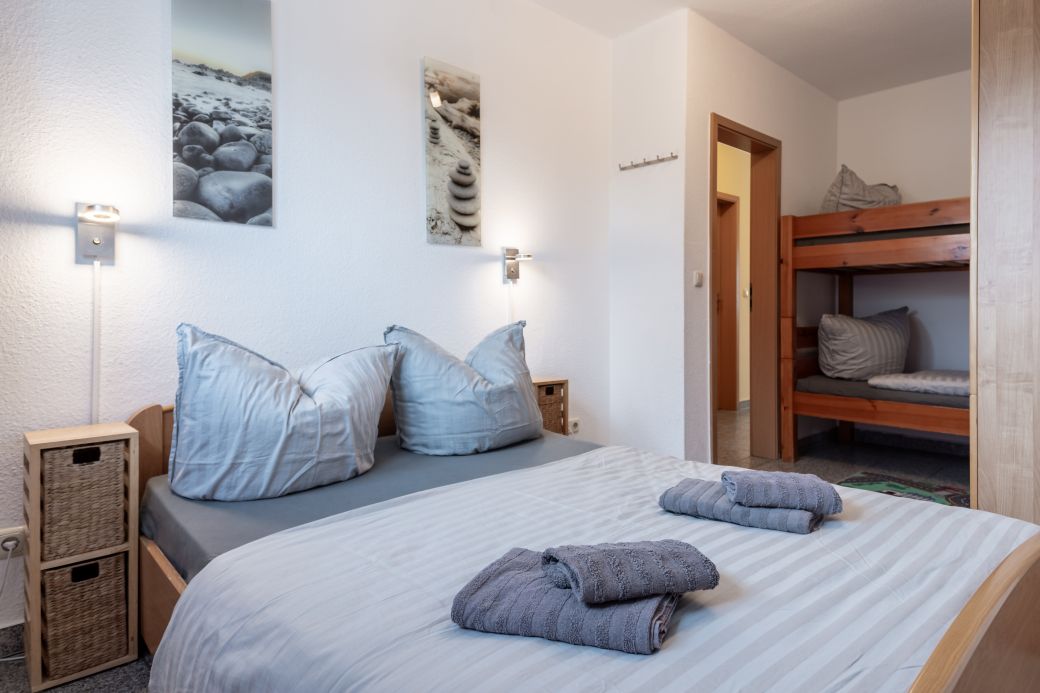 2. Schlafzimmer mit einem Doppelbett und einem Hochbett