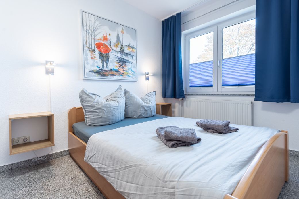 Verdunklungsvorhänge in beiden Schlafzimmern