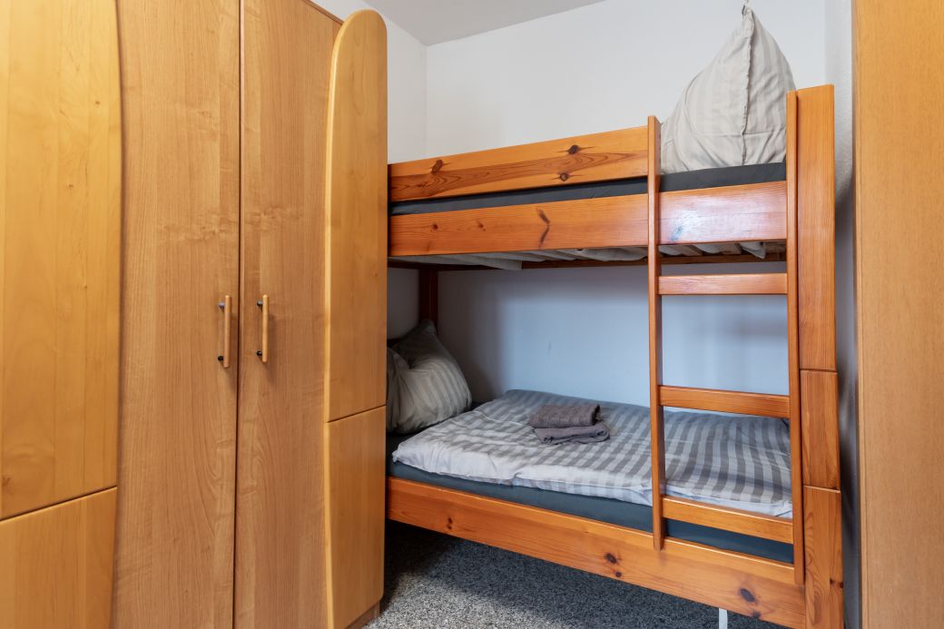 2. Schlafzimmer mit einem Doppelbett und einem Hochbett