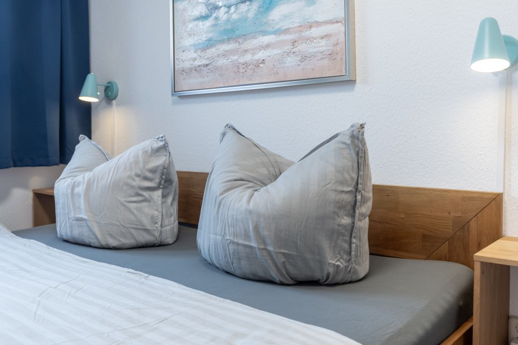 1. Schlafzimmer mit einem Doppelbett (1,80 x 2,00 m, Marken Matratzen-Härtegrad 3)