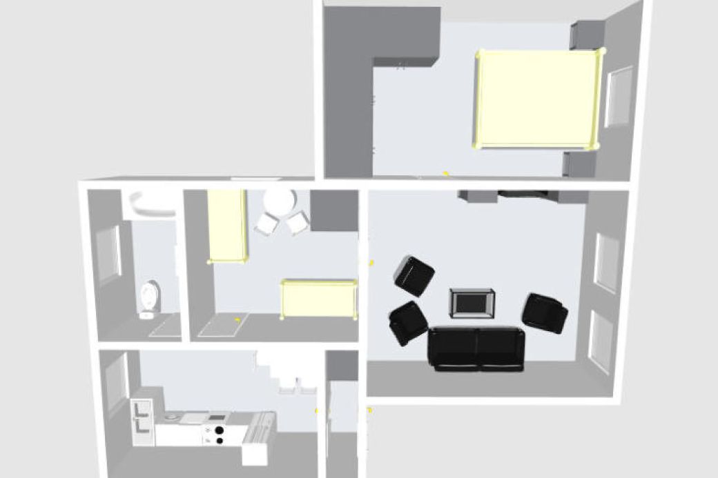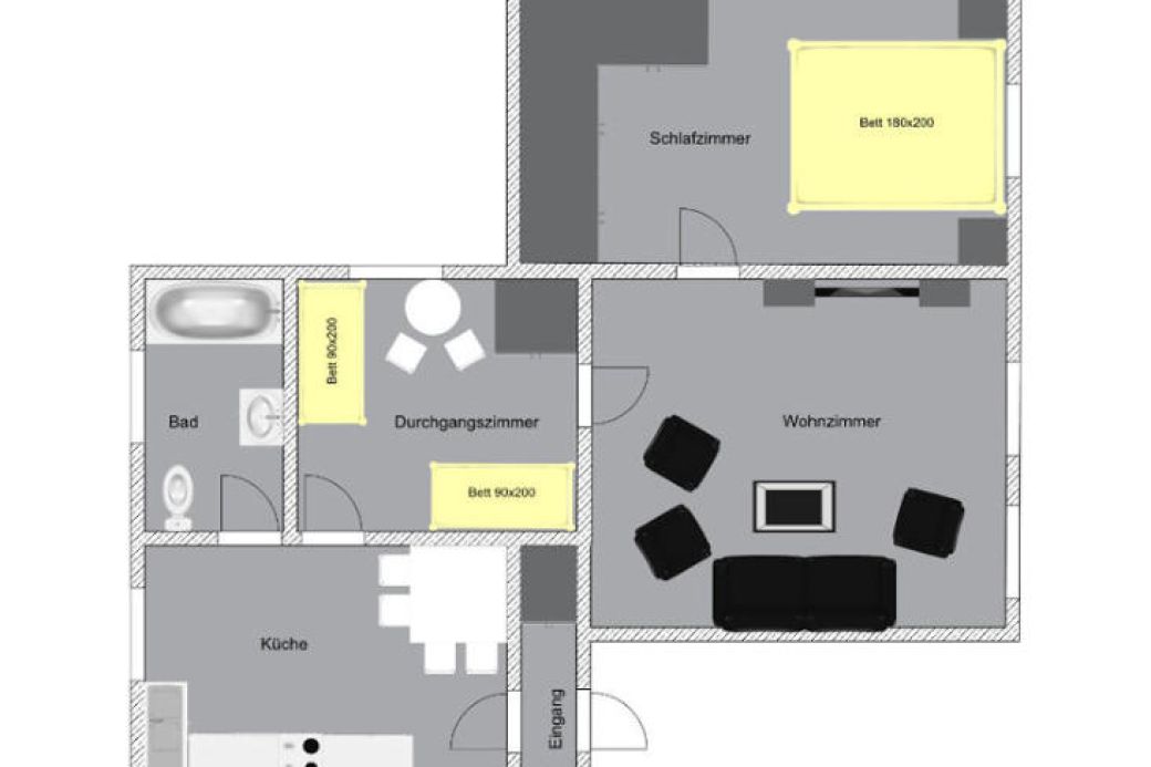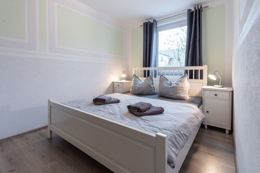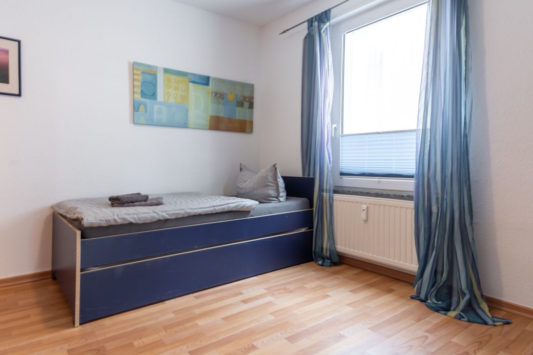 2 getrennte Schlafzimmer (Marken Matratzen-Härtegrad 3, Verdunklungsvorhänge) davon 1 Durchgangszimmer mit 2 Einzelbetten