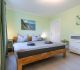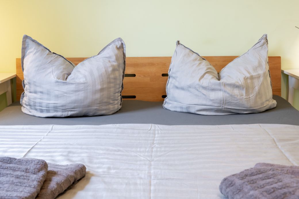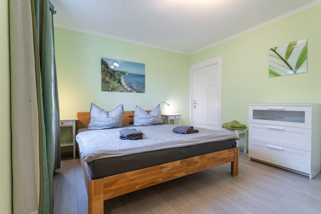 1 Schlafzimmer mit Doppelbett (1,80 x 2,00 m) (Marken Matratzen-Härtegrad 3, Verdunklungsvorhänge)