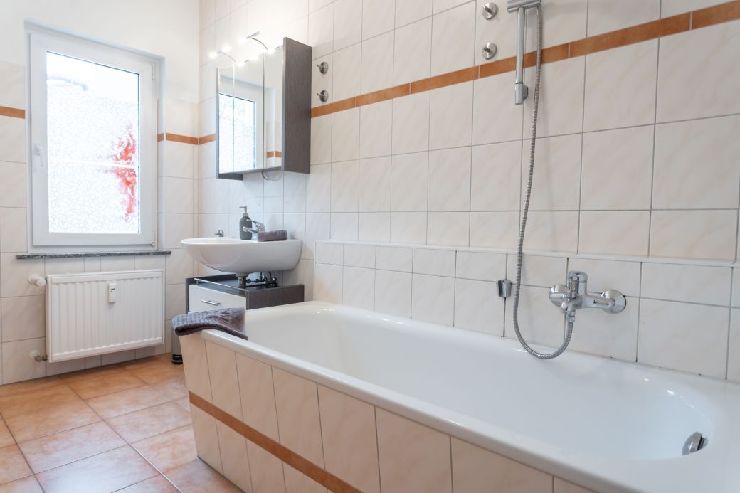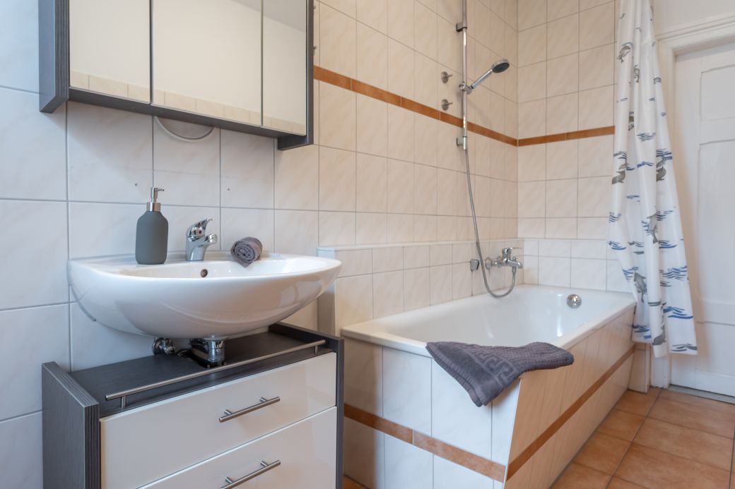 Gäste-WC, Bad mit Badewanne und Duschvorhang