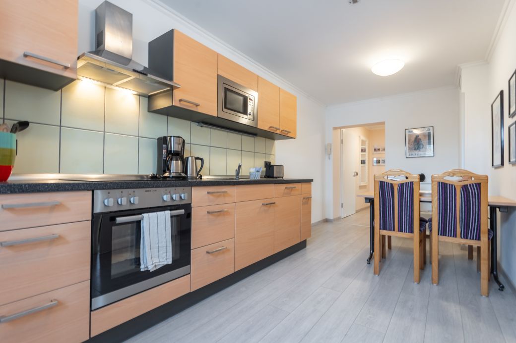 moderne Küchen mit allen notwendigen Geräten (Mikrowelle, Ceranfeld, Spülmaschine, Gefrierschrank mit 3 Fächern, etc.)