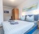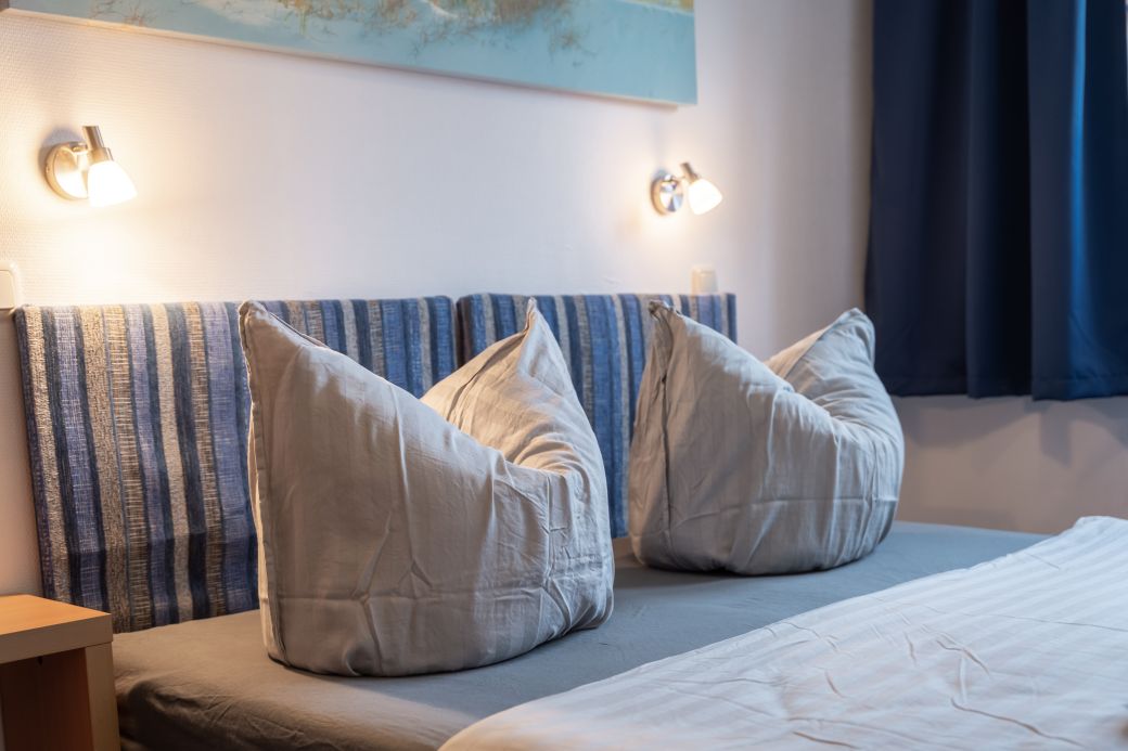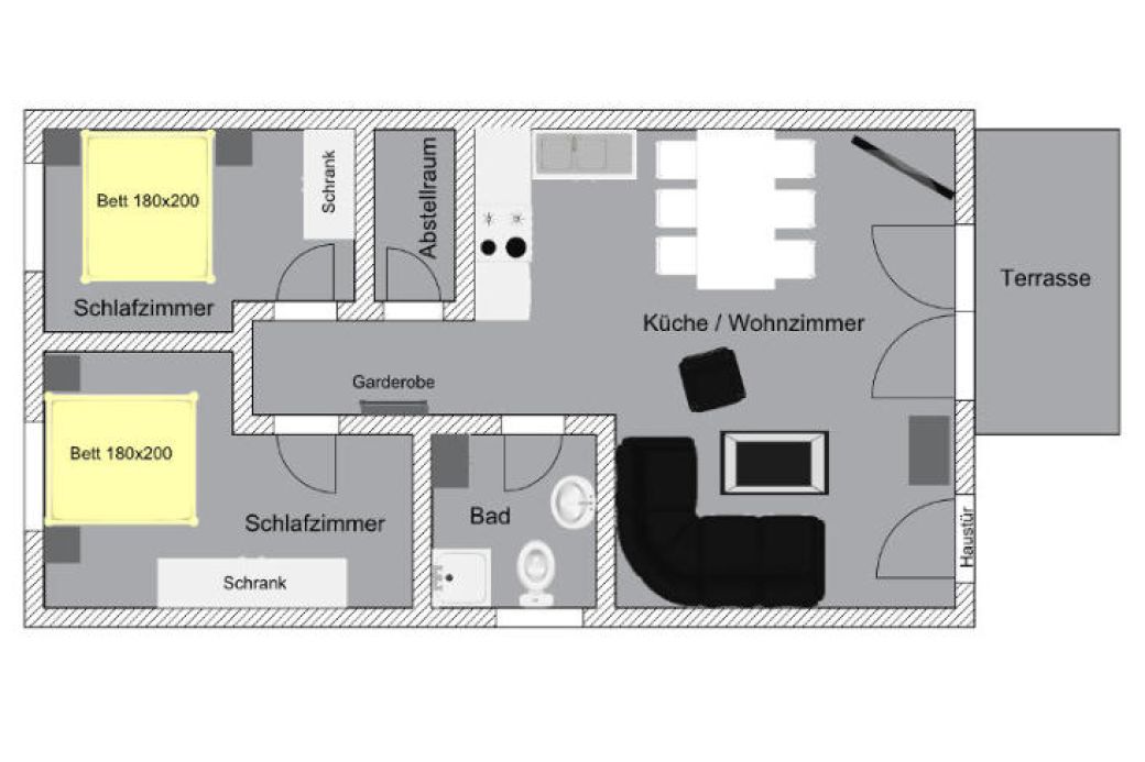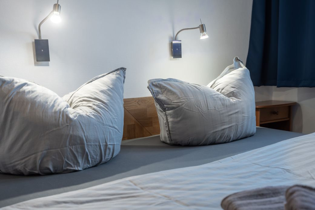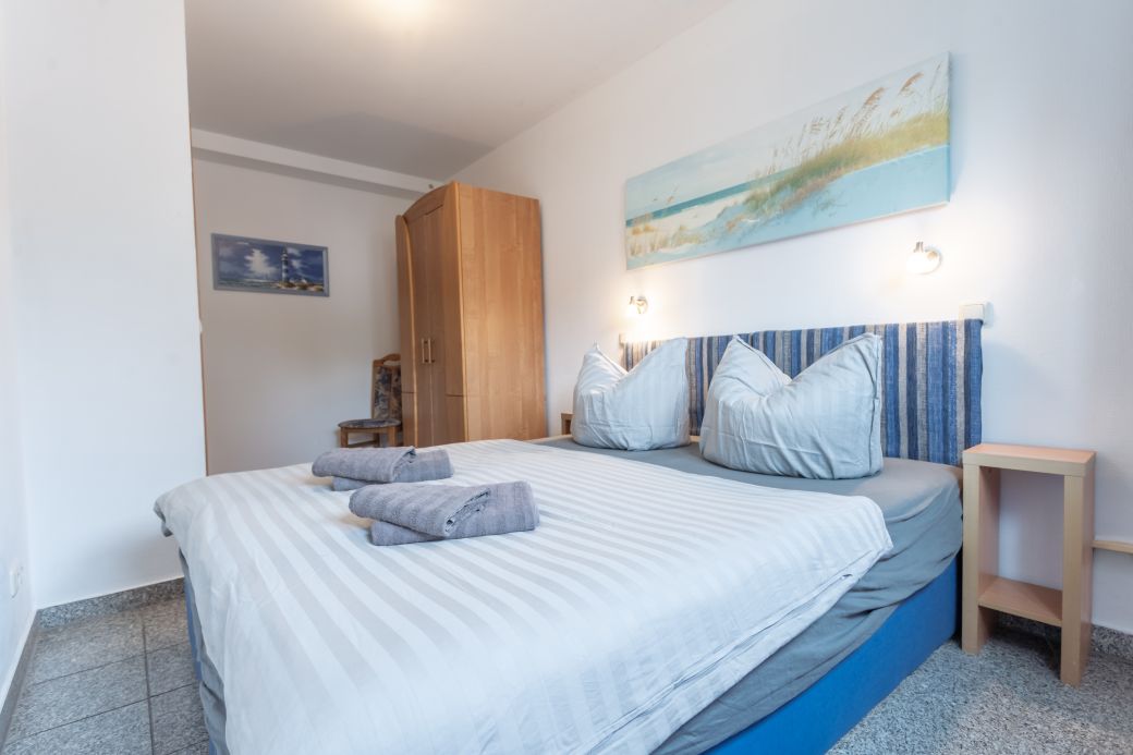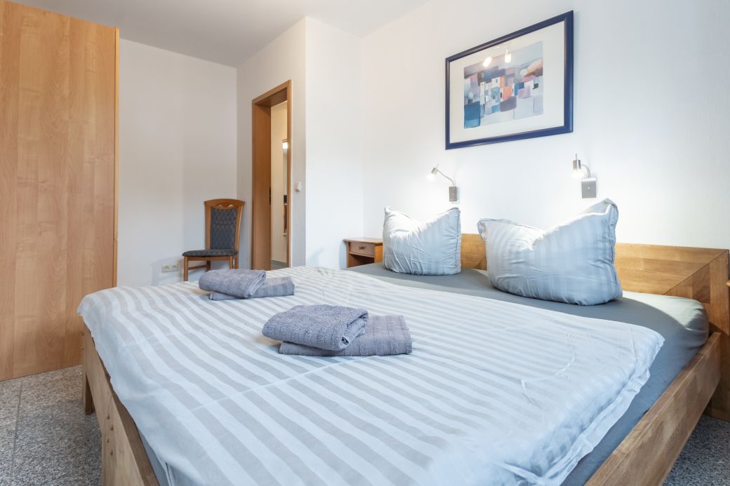 2 getrennte Schlafzimmer mit je einem Doppelbett (1,80 x 2,00 m, Marken Matratzen-Härtegrad 3, Verdunklungsvorhänge)