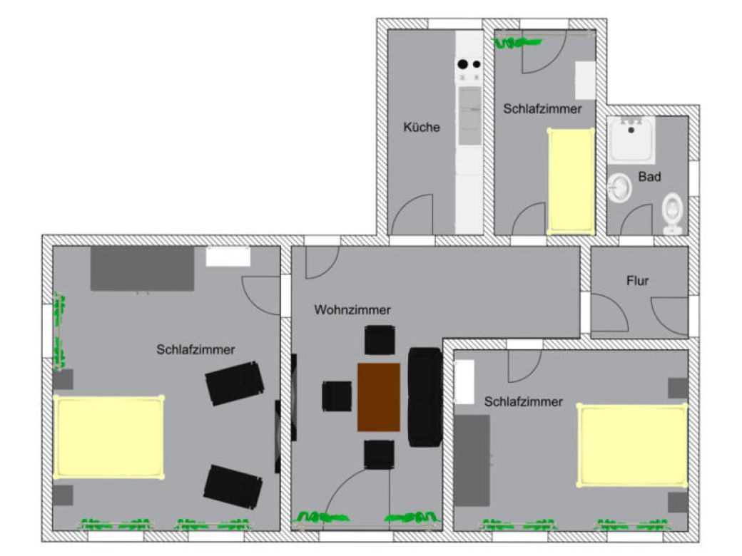 Die Ferienwohnung im Erdgeschoss ist für bis zu 6 Personen.