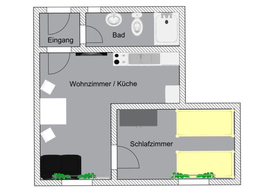 Die Ferienwohnung im Erdgeschoss ist für max. 2 Personen.