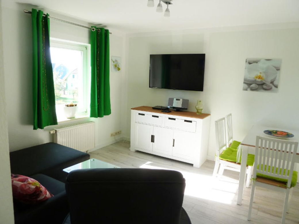 Wohnbereich mit Flachbildfernseher, Kabelfernsehen, DVD-Player und Stereoanlage