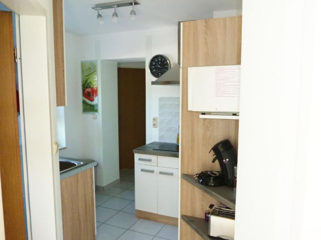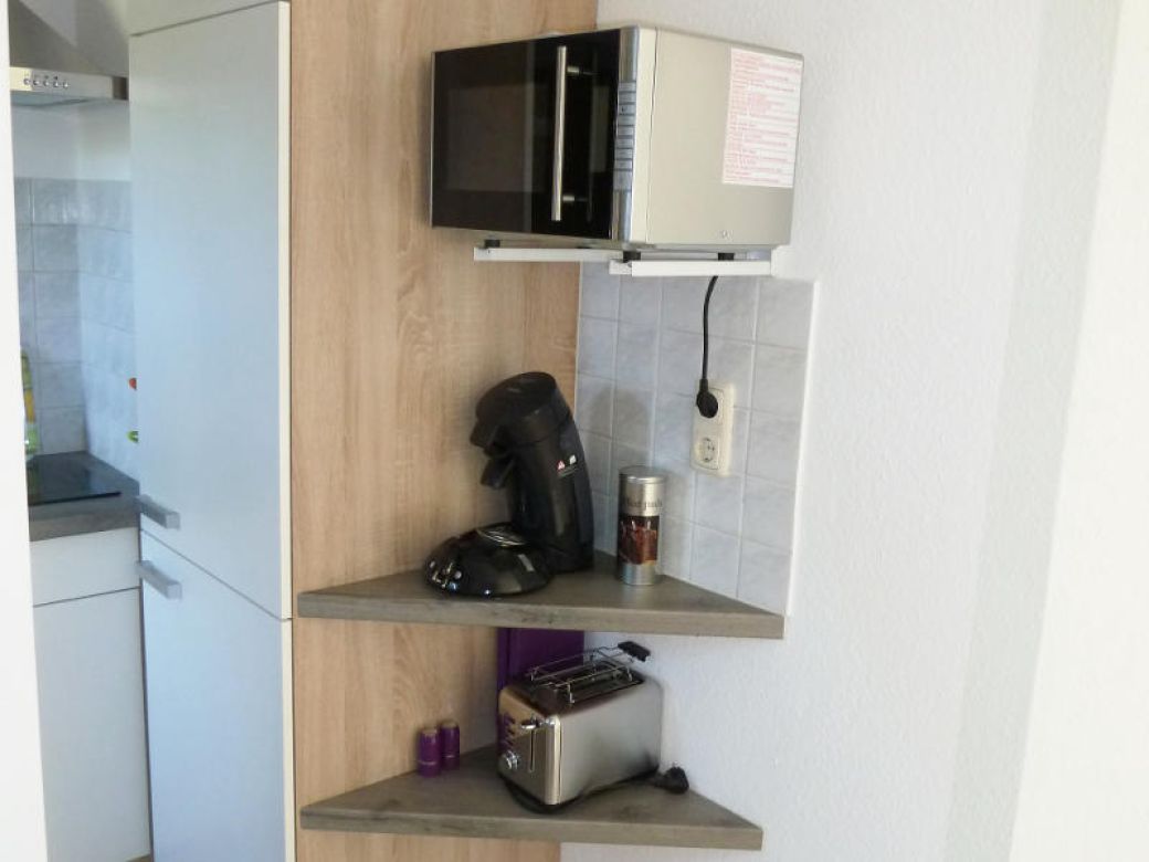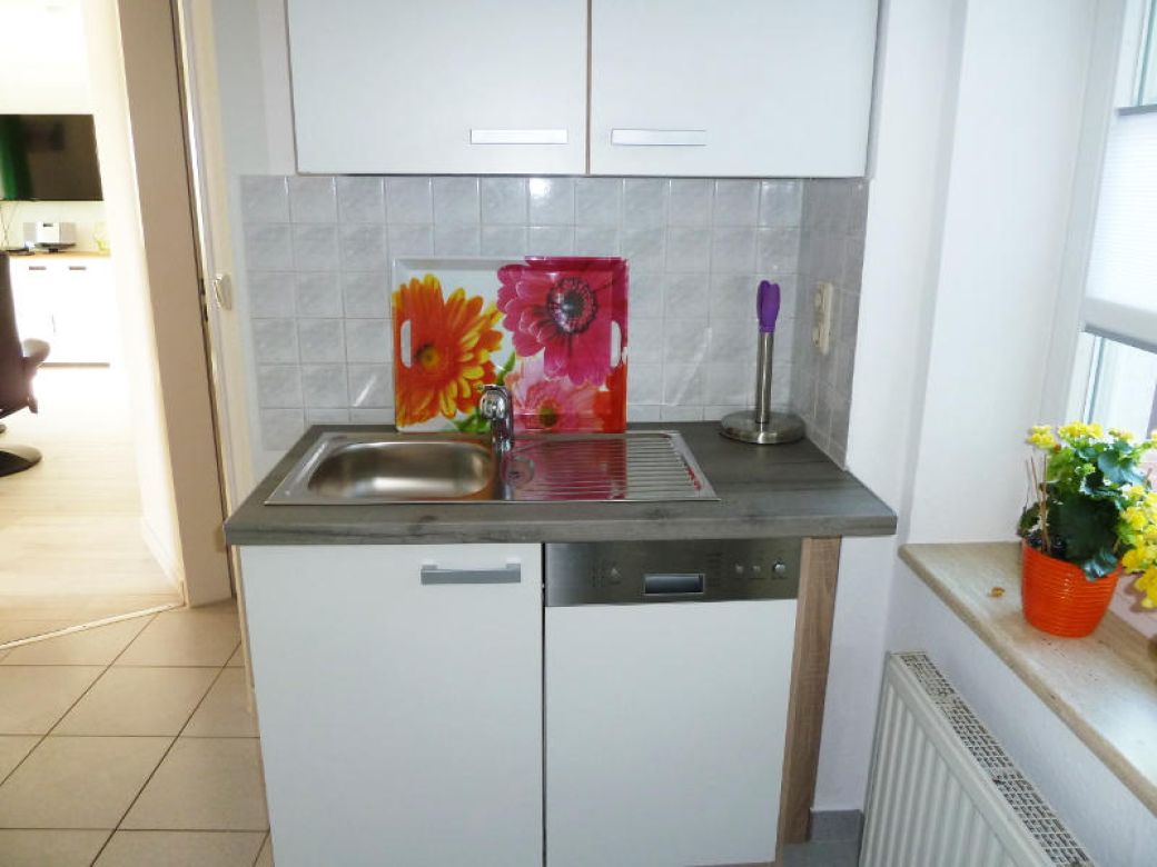 moderne Küche mit allen notwendigen Geräten (Mikrowelle, Ceranfeld, Senseo-Kaffeemaschine, Spülmaschine, Kühlschank mit Gefrierfach, etc.)